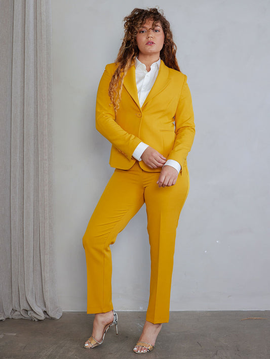 OMC 3-Pieces Women's Mustard Yellow Slim Stretch Fit Luxe Suit
