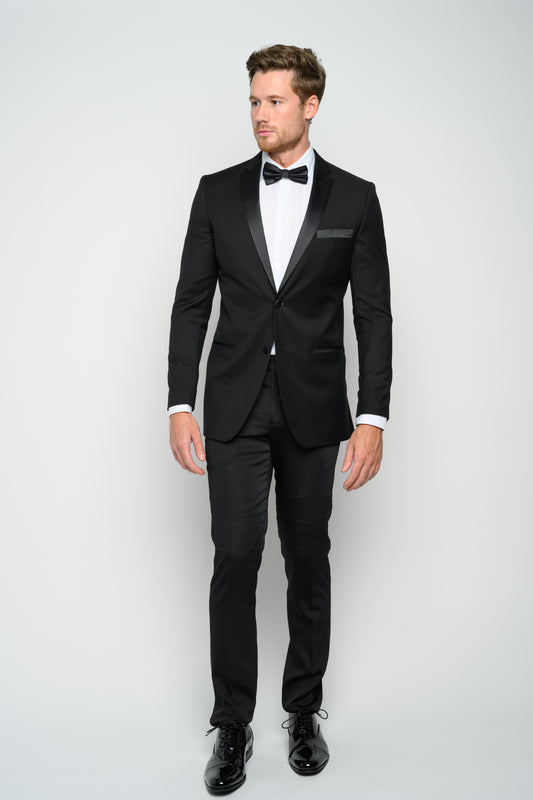 OMC Signature Men's Black Notch Lapel Slim Fit Tuxedo (2-Pieces)