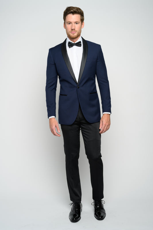 OMC Signature Men's Navy Shawl Lapel Slim Fit Tuxedo (2-Pieces)