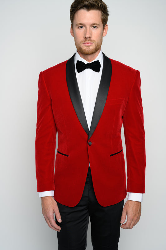OMC Signature Men's Velvet Shawl Lapel Slim Fit Tuxedo Jacket (Red)