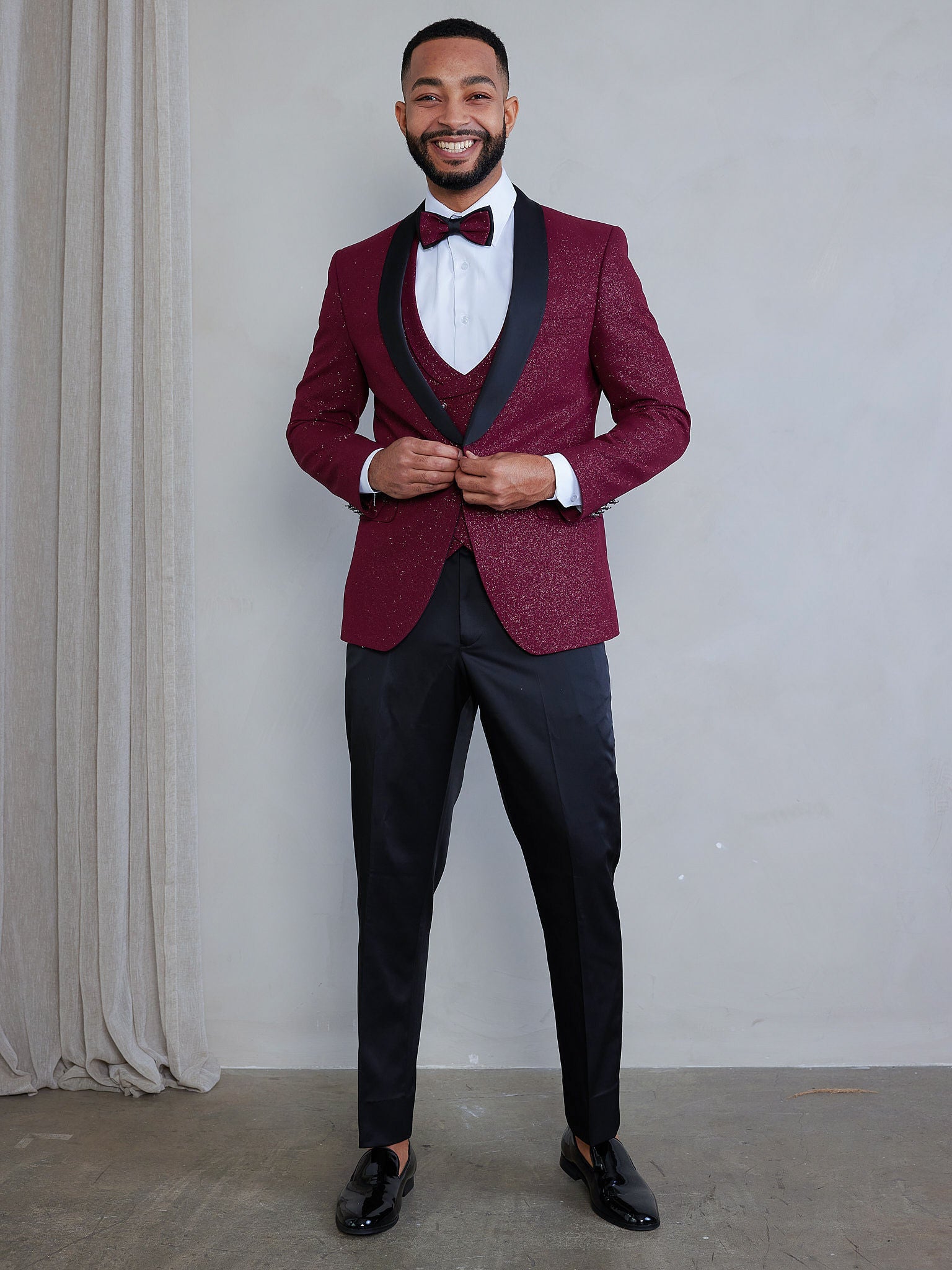 OMC Signature Men's Slim Fit Burgundy Modern Sequin Tuxedo Set (3-Pieces)